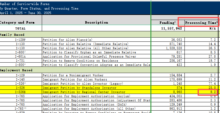但是根据数据显示,目前I-526E的审批时间相对较快(Q3的平均审核时间是9.2个月)。
