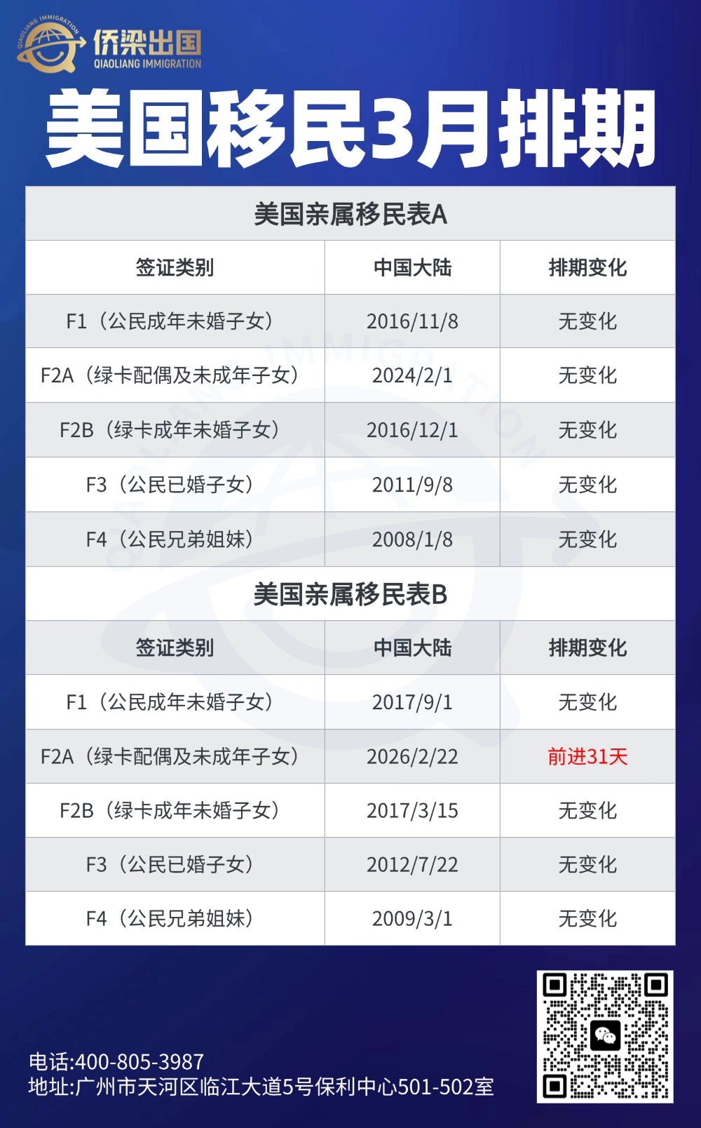 接下来让我们看看详细的2026最新美国移民3月排期表。