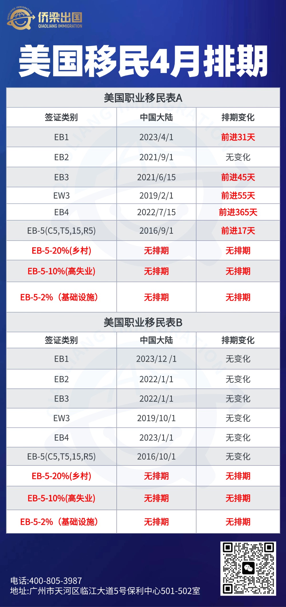 - F2A类别(配偶及未成年子女): 表B(递交日期)恢复至无排期状态,为申请人提供了极大的便利。