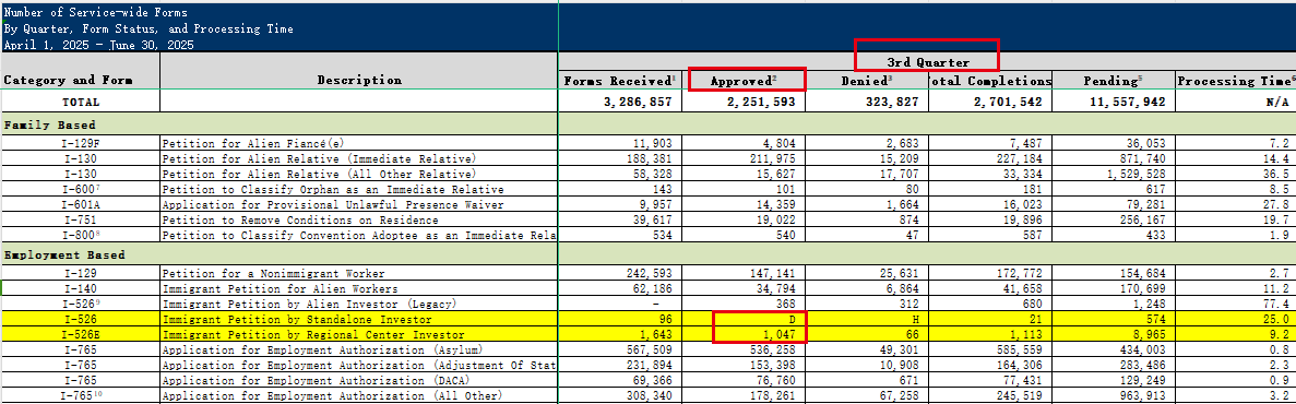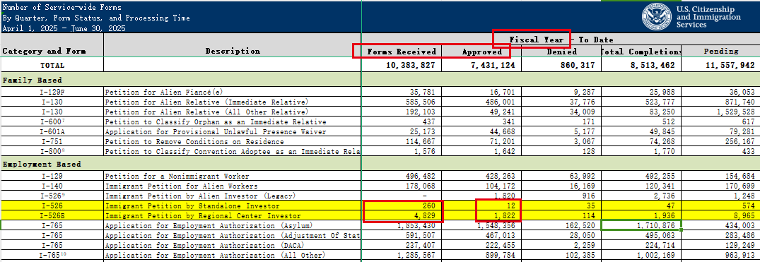 - 高批准率:2025财年,I-526E的平均批准率维持在约94%!