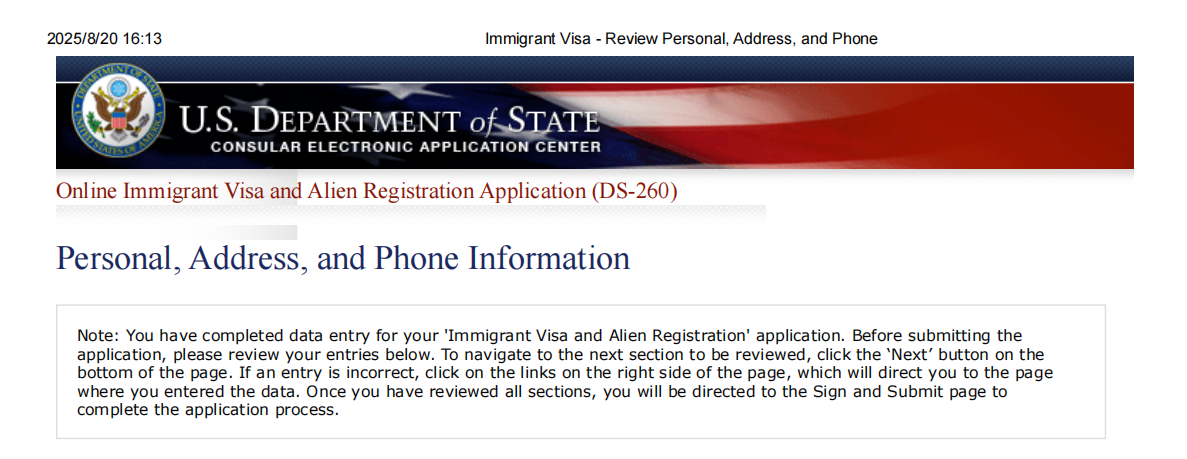 父母亲属移民的重要环节之一就是填写 DS-260 表格。