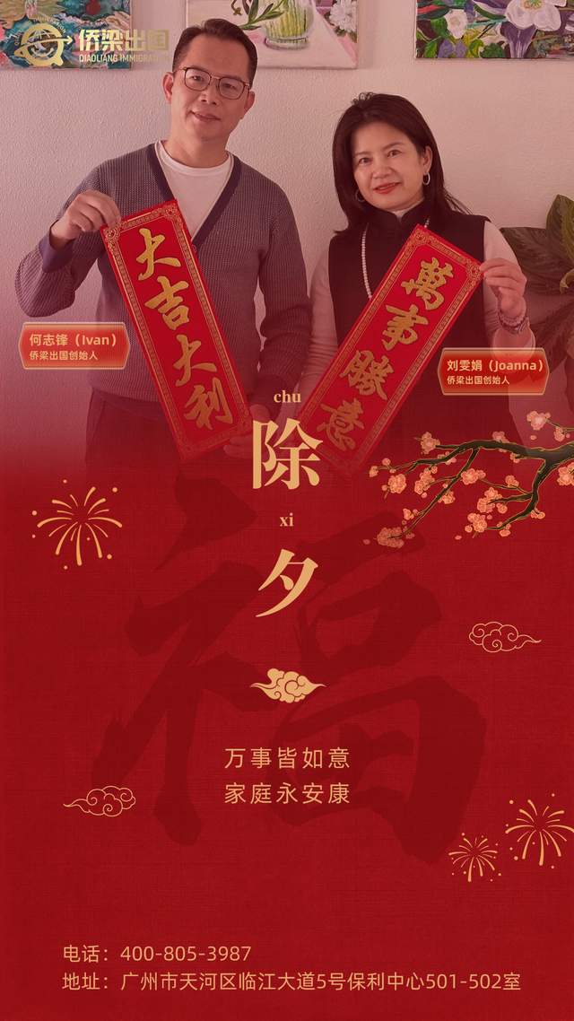 在此,侨梁出国再次祝愿您和您的家人除夕快乐,新春大吉,身体健康,万事如意!