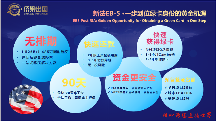 该途径要求申请人投资80万美元(TEA地区)或105万美元(非TEA),并创造10个就业岗位,从而直接获得绿卡。