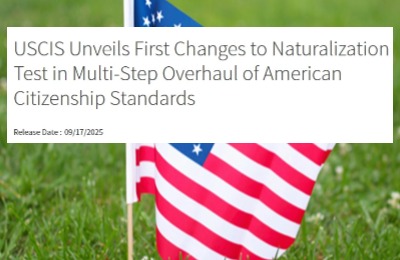 2025-09-18 重磅!美国移民局再出新规,入籍考试迎来最严升级,绿卡持有人如何应对?文章导读 2025年下半年,美国入籍之路迎来了显著变化。短短两个月内,三项与入籍直接相关的政策与信号接连释放...View details